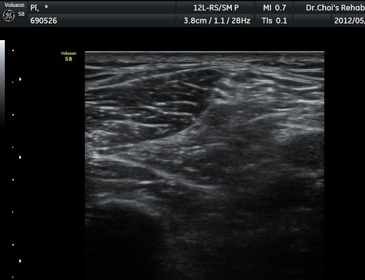 ÃÊÀ½ÆÄ °Ë»ç À´Ù¸®(thigh) ¾Æ·¡ ºÎÀ§ ¿ÜÃø Ⱦ´Ü¸é°Ë»ç¿¡¼ À̵ιڱ٠³»Ãø¿¡¼ ÃѺñ°ñ½Å°æÀÌ Á¤»óÀûÀ¸·Î °üÂûµÈ´Ù(±×¸² 1, 2).