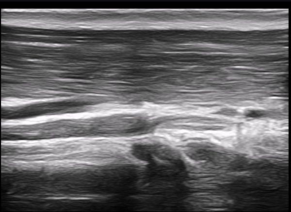 ÃÊÀ½ÆÄ ¼Ò°ß : »ó¹Ú ³»Ãø ±ÙÀ°ÇǺνŰæ Ⱦ´Ü¸é°Ë»ç ¿¡¼ ±ÙÀ°ÇǺνŰæÀÇ Àú¿¡ÄÚ ºÎÁ¾ÀÌ °üÂûµÈ´Ù(»çÁø 1). ŽÃËÀÚ¸¦ Á¶±Ý ¸»´ÜÀ¸·Î À̵¿ÇÏ´Ï ±ÙÀ°ÇǺνŰæÀÇ À§ÃàÀÌ °üÂûµÇ°í(»çÁø 2) ŽÃËÀÚ¸¦ Á¶±Ý ´õ ¸»´ÜÀ¸·Î À̵¿ÇÏ´Ï ±ÙÀ°ÇǺνŰæÀÌ Á¤»êÀûÀ¸·Î °üÂûµÈ´Ù(»çÁø 3). ÷ºÎ µ¿¿µ»ó¿¡¼ ±ÙÀ°ÇǺνŰæÀÇ À§¿Í °°Àº º¯È¸¦ Àß º¸¿©ÁØ´Ù(Ŭ¸¯). ±ÙÀ°ÇǺνŰæÀÇ Á¾´Ü¸é°Ë»ç¿¡¼ ±ÙÀ°ÇǺνŰæÀÇ ±¹¼ÒÀû ÇùÂø°ú ±ÙÀ§ºÎÀÇ Àú¿¡ÄÚ ºÎÁ¾ÀÌ °üÂûµÈ´Ù (»çÁø 4, 5, 6,7) À̰ÍÀº ½Å°æÀÇ ¿°Àü(torsion)¿¡ ºÎÇÕÇÏ´Â ¼Ò°ßÀÌ´Ù. ½Å°æ º´º¯ÀÇ ÇǺο¡ Ç¥½Ã ÷ºÎÆÄÀÏ 5