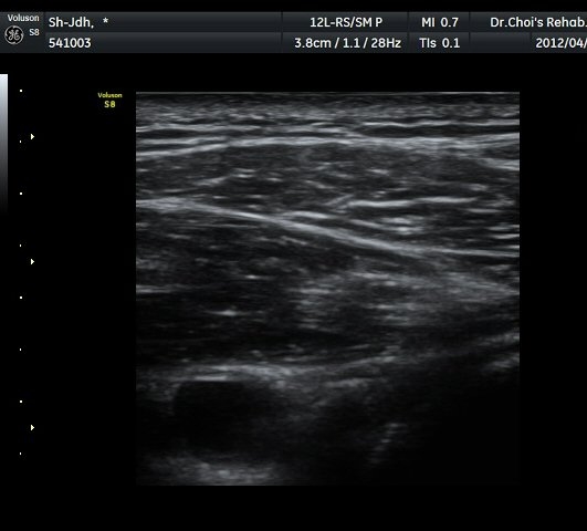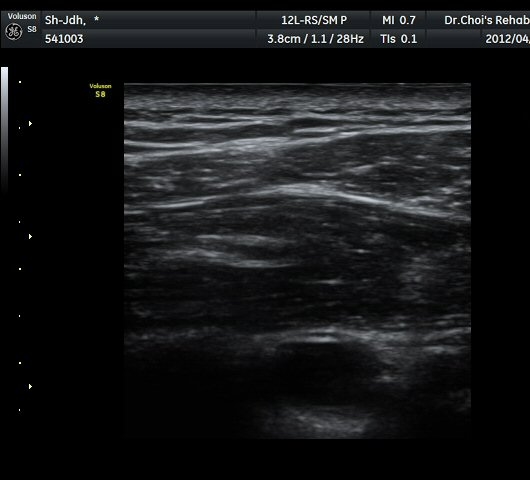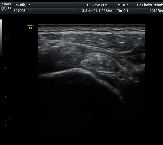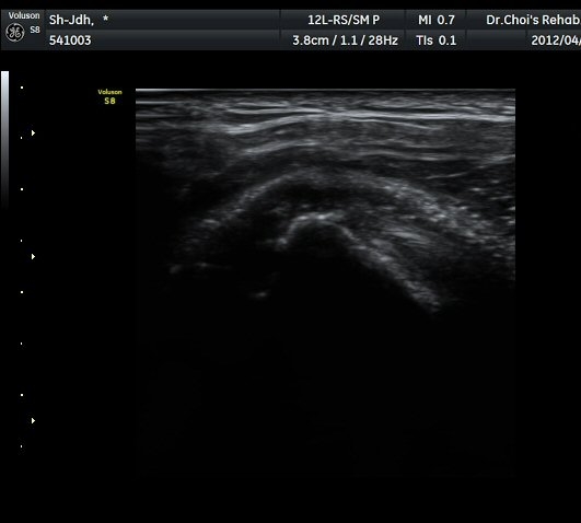 ÃÊÀ½ÆÄ°Ë»ç À̵ιڱ٠Ⱦ´Ü¸é°Ë»ç¿¡¼ À̵ιڱٰÇÀÇ ºñÈĸ¦ º¸ÀÓ(»çÁø 1, 2). ¾î±ú µÚ °üÀý¼ø °Ë»ç¿¡¼ °üÀý¼ø Ç¥Ãþ¿¡ Àú¿¡ÄÚ ¼ö¾×Àú·ù°¡ °üÂûµÊ(»çÁø 4). ŽÃËÀÚ¸¦ Á» ´õ µÚ·Î À̵¿ÇÏÀÚ °üÀý¼ø ³»Ãø °¡½Ã°üÀý¿À¸ñÆÐÀÓ(spinoglenoid notch)¿¡ ¿øÇü¸ð¾çÀÇ Àú¿¡ÄÚ ³¶Á¾ÀÌ °üÂûµÊ(»çÁø 5, 6). ÷ºÎÆÄÀÏ ÈÄ¹æ °üÀý¼ø°Ë»ç µ¿¿µ»ó °í Âû ÃÊÁø ½Ã ÃÊÀ½ÆÄ°Ë»ç¿¡¼ °üÀý¼ø ÁÖÀ§ ³¶Á¾Àº È®ÀÎÇÏÁö ¸øÇϰí ÀÌµÎ¹Ú±Ù°Ç ÀåµÎÀÇ ºñÈÄ·Î º¼ ¶§ Ãæµ¹ÁõÈıºÀ¸·Î ÆÇ´ÜÇϰí ȸÀü±Ù°³°£°ÝÀ» ÅëÇÏ¿© °üÀý³» Áֻ縦 ½ÃÇàÇÏ¿´À¸´Ï ÀüÇô È¿°ú¸¦ º¸Áö ¸øÇÏ¿´´Ù. ³»¿ø 1ÁÖ ÈÄ¿¡µµ ÀáÀ» ÀڱⰡ ºÒÆíÇÑ Á¤µµÀÇ ÅëÁõÀÌ °è¼ÓµÇ¾î ÀÌÇÐÀû°Ë»ç °á°ú ½ÉÇÑ ÅëÁõÀ» µÞ¹ÞħÇÏ´Â ¼Ò°ßÀ» °üÂûÇÒ ¼ö ¾ø¾ú´Ù. ´ÜÁö ±ØÇϱ٠¾Æ·¡ ¿ÜÃø¿¡ ½ÉÇÑ ¾ÐÅëÀÌ °üÂûµÇ¾ú´Ù. ´Ù½Ã ÃÊÀ½ÆÄ°Ë»ç¸¦ ½ÃÇàÇÏ´Ï °üÀý¼ø ³»Ãø¿¡ ³¶Á¾À» È®ÀÎÇÏ¿´´Ù. ³¶Á¾À» È®ÀÎ ÈÄ ÃÊÀ½ÆÄ À¯µµÇÏ¿¡ ÈíÀÎÀ» ½ÃµµÇÏ¿´À¸´Ï ÁÖ»ç¹Ù´ÃÀÌ ³¶Á¾³»¿¡ Á¤È®ÇÏ°Ô À§Ä¡ÇÏ¿´À½¿¡µµ ¼ö¾×ÀÇ ÈíÀÎÀº µÇÁö ¾Ê¾ÒÀ¸³ª ÈíÀÎ ÈÄ Áõ»óÀÌ ¶Ñ·ÈÇÏ°Ô °¨¼ÒÇÏ¿´°í ±¼°î ½Ã ÅëÁõÀÌ °ÅÀÇ »ç¶óÁ³´Ù. ÈÄ¹æ °üÀý¼ø ÁÖÀ§ ³¶Á¾Àº ÈçÄ¡ ¾ÊÀ¸¹Ç·Î Åë»êÀûÀÎ ¾î±ú ÃÊÀ½ÆÄ°Ë»ç ½Ã ÈĹæ°üÀý¼ø °Ë»ç´Â ÀÛÀº ³¶Á¾Àº °üÂûµÇÁö ¾ÊÀ¸¹Ç·Î ÀÆÈ Á߸³ »óÅ¿¡¼ ÈĹæ°üÀý¼øÀ» °üÂûÇÏ¿©¾ß ÈĹæ°üÀý¼ø ±ØÇϱÙÀÇ ½ÉÇÑ ¾ÐÅëÀÌ ÈĹæ°üÀý¼ø ÁÖÀ§ ³¶Á¾ÀÇ ´ëÇ¥ÀûÀÎ Áõ»óÀ̹ǷΠÀÌ·± Áõ»óÀÌ ÀÖ´Â °æ¿ì¿¡´Â ÈĹæ°üÀý¼øÀ» öÀúÈ÷ È®ÀÎÇØ¾ß ÇÑ´Ù. ÈĹæ°üÀý¼ø ³¶Á¾¿¡ ÀÇÇÑ ÅëÁõÀº ÁÖ»ç¹Ù´Ã¿¡ ÀÇÇÑ ³¶Á¾ÀÇ ÃµÀÚ¸¸À¸·Îµµ Áõ»óÀÌ Å©°Ô È£ÀüµÇ¹Ç·Î ¼ö¾×ÀÌ ÈíÀÎ µÇÁö ¾Ê´õ¶óµµ Ä¡·áÀû È¿°ú°¡ Å©´Ù. ±×·¯³ª »ó°ß°©½Å°æ ¸¶ºñ°¡ ÀÖ´Â °æ¿ì¿¡´Â ÈíÀÎÀÌ ¾ÈµÇ°í ³¶Á¾À¸ Å©±â°¡ ÁÙ¾îµéÁö ¾Ê´Â °æ¿ì¿¡´Â ¼ö¼úÀû Ä¡·á¸¦ °í·ÁÇØ¾ß ÇÑ´Ù.
