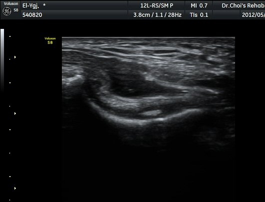 ÃÊÀ½ÆÄ °Ë»ç ÆÈ²ÞÄ¡ ¿ÜÃø Á¾´Ü¸é°Ë»ç¿¡¼ ¼ÒµÎ ¾ÕÂÊ¿¡ ¼ö¾×Àú·ù°¡ °üÂûµÈ´Ù(±×¸² 1). ÆÈ²ÞÄ¡ ³»Ãø Á¾´Ü¸é°ú Ⱦ´Ü¸é°Ë»ç¿¡¼ ȰÂ÷ ¾Õ°ú °¥°í¸®µ¹±â¿Í(coronoid fossa)¿¡ ¼ö¾×Àú·ù°¡ °üÂûµÇ°í °¥°í¸®µ¹±â¿Í¿¡ °í¿¡ÄÚ »À µ¢¾î¸®°¡ °üÂûµÈ´Ù(±×¸² 2, 3). ÁֵοÍ(olecranon fossa) Á¾´Ü¸é°Ë»ç¿Í Ⱦ´Ü¸é°Ë»ç¿¡¼ ÁÖµÎ¿Í ¼ö¾×Àú·ù¿Í °ø¿¡ÄÚ »À µ¢¾î¸®°¡ °üÂûµÈ´Ù(±×¸² 4, 5, 6). ÁÖ°ü Ⱦ´Ü¸é°Ë»ç¿¡¼ °üÀý³» ¼ö¾×Àú·ù¿Í ô°ñ½Å°æÀÇ Ç¥ÃþÀ¸·Î ÀüÀ§°¡ °üÂûµÈ´Ù(±×¸² 7). ÁÖµÎ¿Í È¾´Ü¸é°Ë»ç ¿µ»ó¿¡¼(»çÁø) ÃÊÀ½ÆÄ À¯µµÇÏ¿¡ °üÀý³» Áֻ縦 ½ÃÇàÇÏ¿´´Ù(µ¿¿µ»ó).