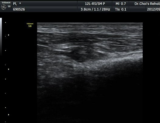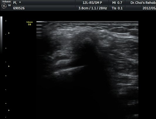 ÃÊÀ½ÆÄ °Ë»ç À´Ù¸®(thigh) ¾Æ·¡ ºÎÀ§ ¿ÜÃø Ⱦ´Ü¸é°Ë»ç¿¡¼ À̵ιڱ٠³»Ãø¿¡¼ ÃѺñ°ñ½Å°æÀÌ Á¤»óÀûÀ¸·Î °üÂûµÈ´Ù(±×¸² 1, 2).