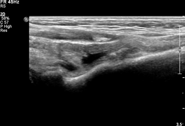 ¿ìÃø ÆÈ²ÞÄ¡ ¾ÕÂÊ ÀÌµÎ¹Ú±Ù°Ç È¾´Ü¸é°Ë»ç¿¡¼ ÀÌµÎ¹Ú±Ù°Ç ÁÖÀ§ ¼ö¾×Àú·ù¿Í ÀÌµÎ¹Ú±Ù°Ç ºÎÁ¾ÀÌ °üÂûµÊ(»çÁø 7, 8).