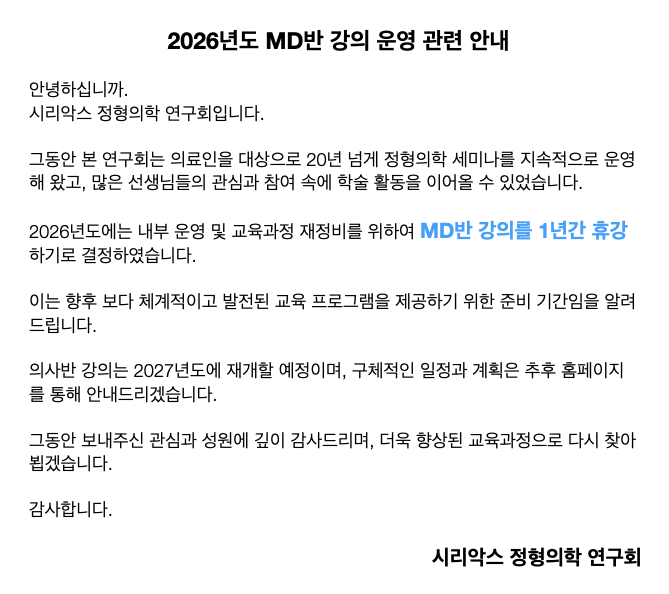 2026³â ½Ã¸®¾Ç½º Á¤ÇüÀÇÇÐ ¿öÅ©¼¥ ÀÏÁ¤ ¾È³» (kmd °úÁ¤)